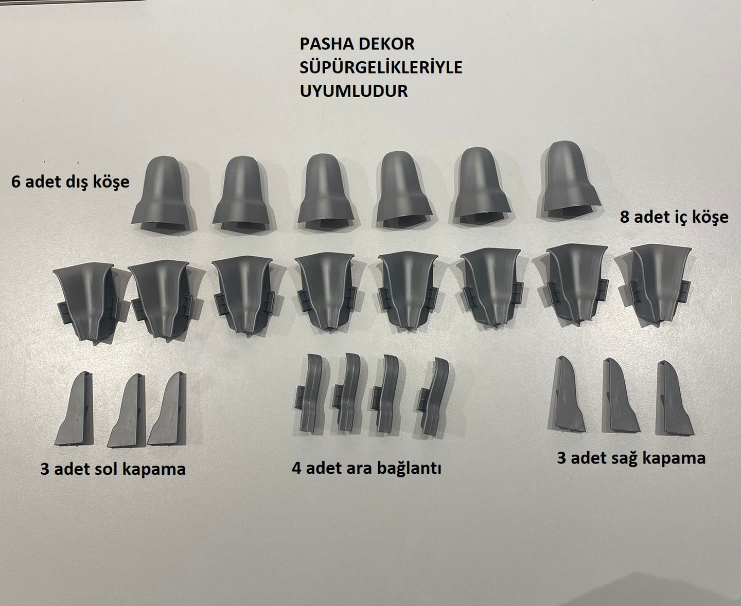 6 cm Gümüş Süpürgelik iç köşe dış köşe aparat